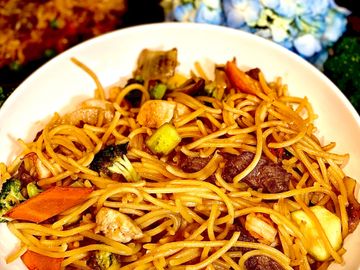Thin noodles pan-fried in house teriyaki sauce with vegetables and choice of meat.