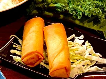 Julienne vegetables wrapped and fried golden brown in a thin flaky won ton.